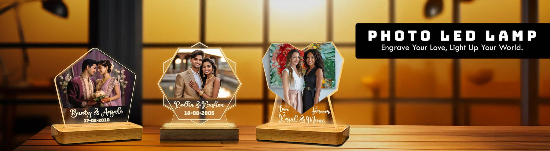 Engraved Acrylic LED Photo Lamp - Pentagon Shape