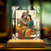 Shree Radha-Krishna Acrylic Led Lamp - Wooden Stand D2