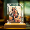 Shree Radha-Krishna Acrylic Led Lamp - Wooden Stand D3